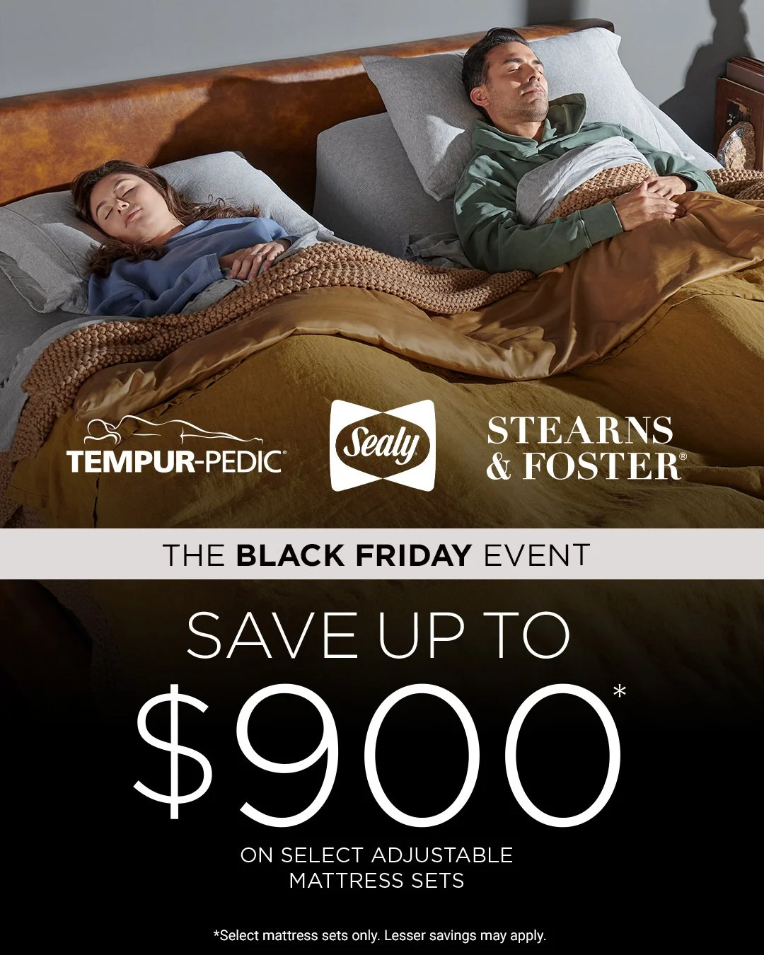 Through December 2nd, all mattress brands are on sale during our Black Firday Mattress Event!